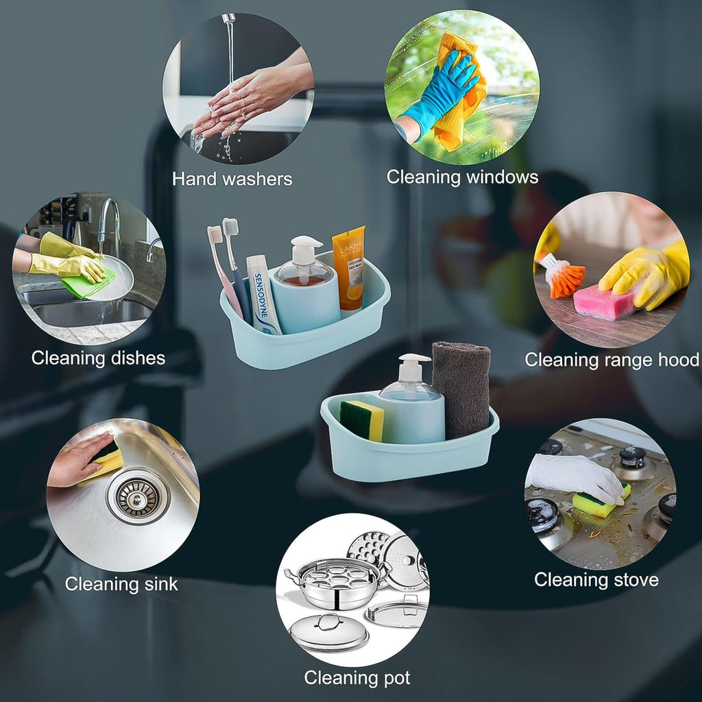 • Ideal for kitchen sinks to store liquid soap and sponges, etc.