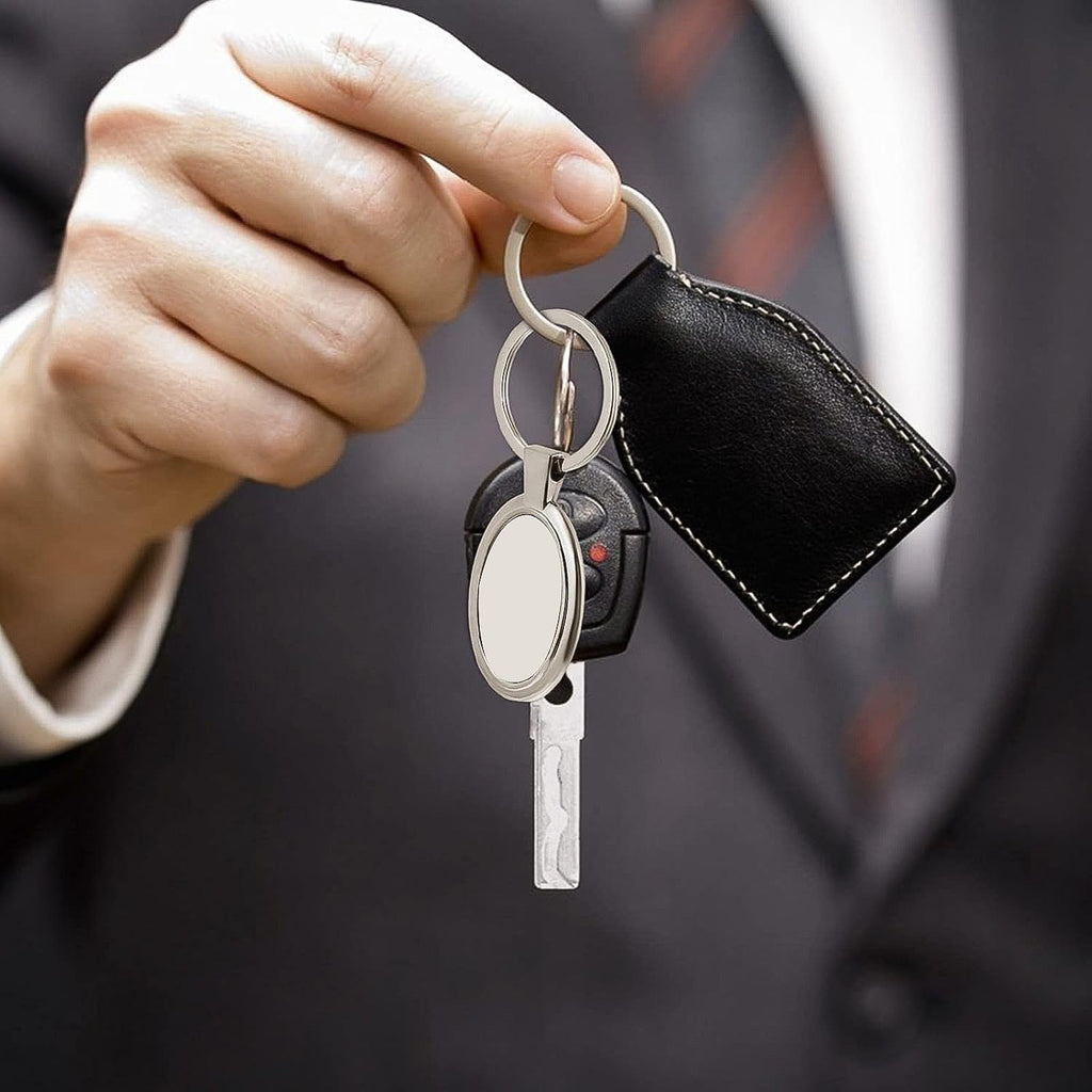 The polished oval design exudes a timeless appeal, while the sturdy ring mechanism ensures that your keys remain secure at all times. Whether for your car keys, bike keys, office access cards, or as a corporate giveaway, this keychain adds an element of class to your daily accessories.